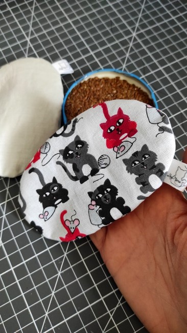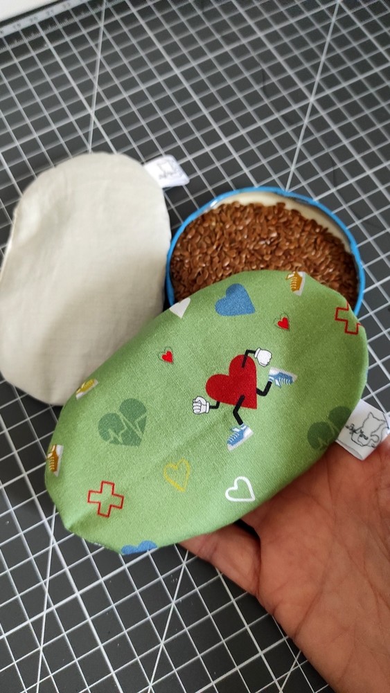 Le corps de la bouillotte est tissu coton uni provenant d'un ancien drap.