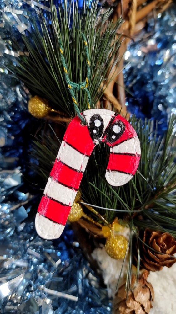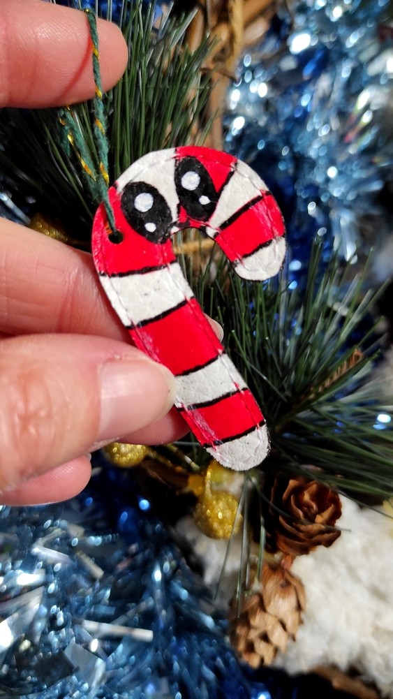Suspension de Noël réalisé en chute de simili-cuir.