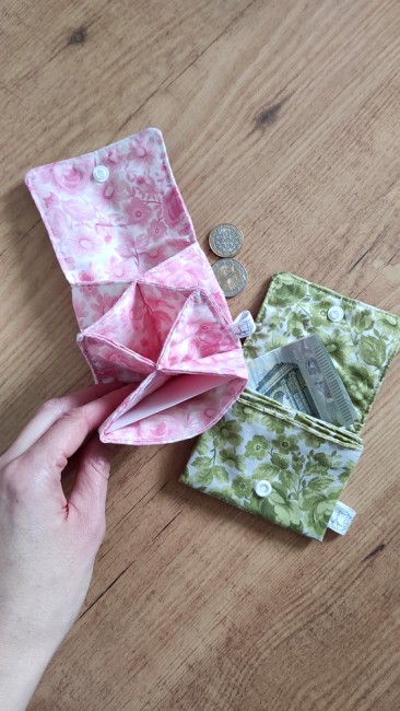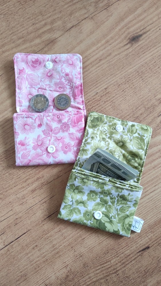 Chaque porte-monnaie est fabriqué à partir de tissus récupérés, ce qui en fait une pièce unique (ou micro-série) de part la découpe du coupon de tissu.