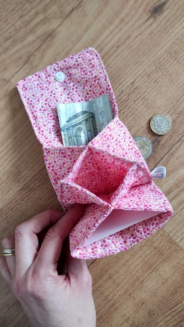 Joli porte-monnaie triple soufflet eco-resposable en tissu upcyclé.
