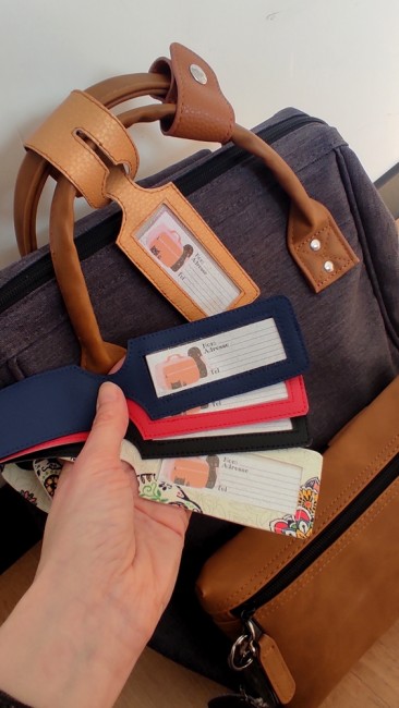 Voici de jolies étiquettes à accrocher à vos valises, sacs et sacs à dos avec vos coordonnées lors de vos voyages !